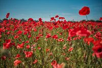 Mooi sfeervol veld met klaprozen aan de Zeeuwse kust