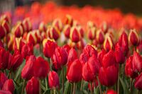 Veld met rode tulpen, Nederland van Peter Schickert