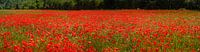 Panorama van een veld met rood bloeiende klaprozen inTulln, Oostenrijk