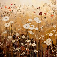 Een kleurrijk digitaal schilderij van een veld met witte bloemen. Het werk geeft een warme en klassieke uitstraling van uw interieur!
