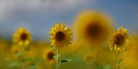 Haal de zomer in huis met deze prachtige zonnebloemen, gefotografeerd in de Auvergne in Frankrijk, Verfraai je muur met deze mooie brede zonnige panorama.