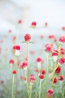 Deze foto van veldbloemen laat de kracht van simplicity zien. Met alleen een lichte achtergrond, lichtgroene bladeren en de licht rode bloemen zelf, brengt deze foto een oase van rust.