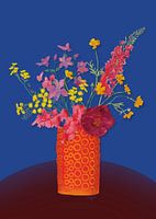 Koop dit bloemen kunstwerk Veldboeket op oranje vaas van Angela Peters op canvas, aluminium dibond, (ingelijste) fotoprint, behang en ArtFrame, op maat geprint in Fine-Art kwaliteit.