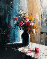 Kleurrijk stilleven"flowers". Een blauwe vaas met bloemen, hier word je vrolijk van! Kies zelf het formaat en materiaal bij dit werk en maak het helemaal passend voor jouw interieur.