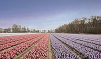 Hollandse bloemenvelden in de Bollenstreek staan in bloei. Het is lente in Nederland. Gefotografeerd in Lisse nabij Keukenhof. Natuur fotografie.