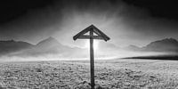 Veldkruis met Christusfiguur, Lorettowiesen bij Oberstdorf, Allgäuer Alpen, Allgäu, Beieren, Duitsland, Europa