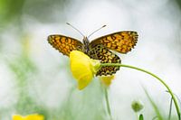 Een opwarmende zeldzame veldparelmoervlinder op een zonnige ochtend in het begin van de zomer in het Limburgse Heuvelland