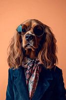 Met zijn majestueuze charme straalt deze Field Spaniel superioriteit uit in een stijlvolle garderobe en een coole zonnebril. Zijn prachtige lange oren en glanzende vacht voegen een elegante touch toe, terwijl de speelse uitdrukking een vleugje ondeugendheid toevoegt. Een echte trendsetter op vier poten!