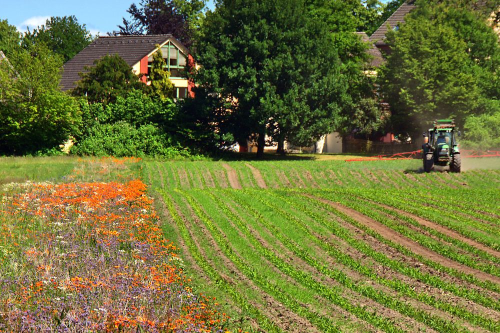 Boer met zijn tractor werkt op de velden in dortmund Schwieringhausen