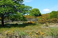 Ik heb deze foto gemaakt in de nationaalpark de Veluwezoom bij Rheden. De dichtstbijzijnde bekende grote plaats is Arnhem. Deze heideveld staat bekend als de Posbank, officieel heet deze heideveld Herikhuizerveld. Ik heb deze foto in de lente gemaakt, de jeneverbes bloeit namelijk nog mooi geel en het blad aan de bomen zijn nog fris groen. De lucht was zelfs ook nog mooi blauw. Tussen de bomen en de jeneverbesstruiken staat ook nog gras en heide. Het is een mooi stukje Veluwe. De paar bomen op de foto zijn eikenbomen. Toen ik deze foto maakte stond ik tussen een paar heuvel in een soort vallei. Het stukje waar ik deze foto heb gemaakt staan voornamelijk heide, eikenbomen en jeneverbes, er staan wel een paar andere soorten planten alleen overheerst die niet in het gebied. Als je goed kijkt tussen de bomen op de foto zie je nog een smal paadje over deze veld lopen. Het gebied waar ik was komen aardig wat recreanten om van het terrein te genieten. De Veluwezoom is aardig geliefd voor de toeristen en dagjesmensen.