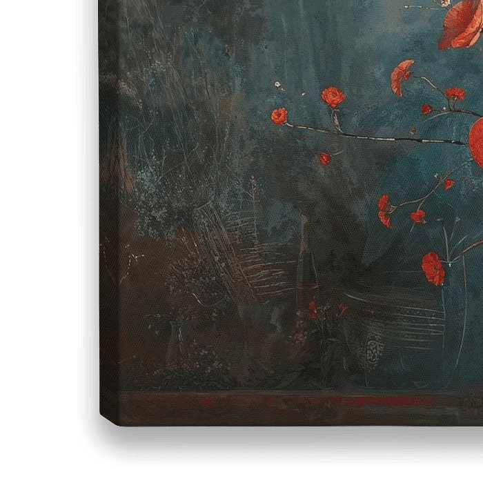 Velvet Blossom Dance - schilderij rode bloemen vaas