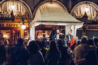 Eine Nachtaufnahme aus Venedig, mit einer Impression vom Grancaffè Quadri auf der Piazza San Marco.