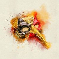 Een levendige aquarelafbeelding van een Venetiaans carnavalsmasker.