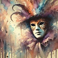 Een digitaal kunstwerk van een Venetiaans masker, dat traditioneel gedragen wordt tijdens carnaval. Het is gemaakt in de stijl van een aquarel. De kleuren zorgen voor een bijzondere uitstraling van uw interieur.