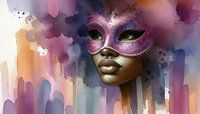 Een digitaal kunstwerk van een Venetiaans masker, dat traditioneel gedragen wordt tijdens carnaval. Het is gemaakt in de stijl van een aquarel. De kleuren zorgen voor een bijzondere uitstraling van uw interieur.