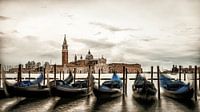 Venetie - San Giorgio Maggiore met bewegende gondels op de voorgrond.
