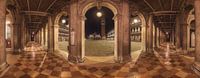 De zuilengalerij op het San Marcoplein als panoramafoto bij nacht.