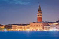 Het uitzicht over het water naar het San Marcoplein met het Dogenpaleis en de San Marcotoren in de avond