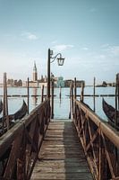 Klassieke opname van een gondelpier bij het San Marcoplein in Venetië. Op de achtergrond de basiliek van San Giorgio Maggiore.