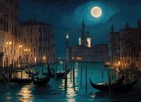 Venice in waterkleuren met de typische gondels en de maan over de kanalen in deze unieke stad .nachtfoto.
