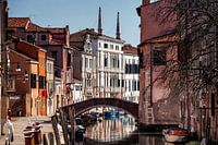 Het is nog rustig in de wijk Cannaregio in de Italiaanse stad Venetië op een zonovergoten voorjaarsdag. Alleen een non is onderweg ...