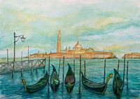 Venetië een droom met zijn gondels, vastgelegd met aquarelverf op echt gelaagd papier aquarelbord "Leonardo" 56 x 76.