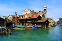 Gracht en kerk in Venetië, Italië.