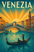 Venezia Art Deco Reisposter - Rialtobrug & Gondels van Travel Shop
