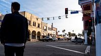 Deze foto is net achter het beroemde Venice beach boardwalk gemaakt, op Pacific avenue. hier is de kruising waar de bekende "Venice" letters hangen. mooi voor aan de muur.