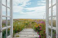 Dompel jezelf onder in een kleurrijke bloemenweide die zich uitstrekt tot aan de horizon. Dit kunstwerk vangt de levendige charme van een bloeiend landschap gezien door een open raam. Deze scène is ideaal voor natuurliefhebbers en bloemenliefhebbers en brengt een vrolijke en verkwikkende sfeer in elke kamer. Perfect voor de woonkamer, slaapkamer of kantoor, deze afbeelding creëert een band met de natuur en voegt een frisse, bloeiende touch toe aan je huis.