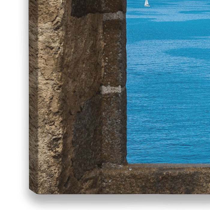 Stel je voor dat je door de dikke, eeuwenoude muren van een kustfort stapt en dit serene uitzicht cadeau krijgt. Dit kunstwerk vangt een moment van absolute rust en vrijheid, omlijst door de ruwe, tastbare textuur van doorleefd natuursteen. De warme, aardse tinten van het stenen kader vormen een krachtig contrast met de levendige…