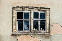 Raam kapot en de gestucte muur bladdert af.