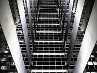 Vensters XII abstract digitale olieverf schilderij van ramen in gebouw in grijs tinten