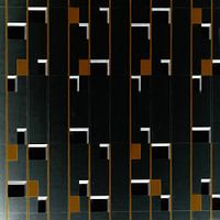 schilderij van ramen in gebouw in bruin zwart en grijs