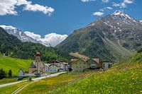 Uitzicht op het bergbeklimmersdorp Vent in de Ötztal vallei in Tirol Oostenrijk tijdens een mooie lentedag in de Alpen. Vent is een van de Bergsteigerdorpen in de Oostenrijkse Alpen. "Bergsteigerdorf" vertaalt van het Duits naar het Engels als "bergbeklimmersdorp" of "bergbeklimmersdorp." Deze dorpen liggen meestal in bergachtige gebieden en zijn gewijd aan het bevorderen van duurzaam en verantwoord bergbeklimmingstoerisme.