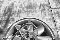 Ventilator van fabriekshal met betonnen muur op de achtergrond. Staat mooi in een industrieel interieur