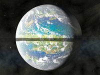 In dit beeld kijken we van opzij tegen de Ringen aan die een schaduw werpen over het continent Aphrodite. Ten noorden en ten zuiden daarvan zien we zeeën en oceanen met talloze eilanden, archipels en mini-continenten.