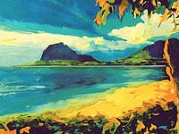 Le Morne Brabant (Mauritius). Prachtig zicht op de berg aan het einde van een schiereiland in het uiterste zuidwestelijke punt van het eiland Mauritius, in de Indische Oceaan, aan de windzijde van het eiland. Een kenmerkend verschijnsel op het schiereiland is de gelijknamige basaltachtige monoliet met een top van 556 meter (1824 voet)…