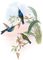 Veraguan Wood-Nymph (Thalurania Venusta), John Gould De ontdekking van deze nieuwe soort door de gevierde Traveler Warszewicz in de buurt van de vulkaan van Chiriqui in Veragua is van tweevoudig belang; Ten eerste, omdat het toevoegen van een extra soort aan het goed gedefinieerde geslacht Thalurania, en ten tweede, als nog verder bewijs leveren dat de meeste vormen ooit beschouwd als eigen aan het continent van Zuid-Amerika, hun vertegenwoordigers in de landen hebben in de landen Liegen tegen het noorden bij de landengte van Panama, algemeen bekend als Midden -Amerika. Deze illustratie is hersteld in zijn oorspronkelijke levendigheid door kleuren te verbeteren en ongewenste tekens te verwijderen. Een monografie van de trochilidæ, of familie van zoemende birds werd gepubliceerd tussen 1849 en 1887 door de Engelse ornitholoog John Gould. Dit monumentale werk toont en beschrijft destijds alle bekende soorten kolibries - bestaande uit 418 lithografische platen en informatie over 537 soorten. "