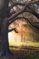 Heerlijk frisse en mistige herfstochtend in een van de velden waar ik als kind veel heb gespeeld onder de majestueuze Ceder van de Libanon met zicht op deze van kleur veranderende oude beuken.
