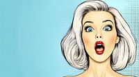 Deze vintage pop-artillustratie toont een jonge vrouw met wijde, verbaasde ogen en een open mond, die verbazing en enthousiasme perfect uitdrukken. De klassieke retrostijl doet denken aan de levendige en contrasterende kleuren van het poparttijdperk, terwijl de gezichtsuitdrukking van de vrouw een sterke emotie en ongebreidelde verwondering uitstraalt. Deze illustratie is ideaal om thema's als verrassing, opwinding of een onverwachte ontdekking te visualiseren. De details en kleuren maken de afbeelding een echte blikvanger en een tijdloos ontwerp in de stijl van de jaren 60.