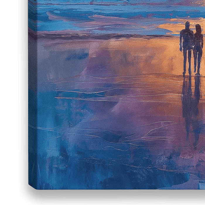 Laat je betoveren door de adembenemende schoonheid van "Verbindend Horizonlicht", een schilderij dat de intieme relatie tussen mens en natuur belicht. Dit kunstwerk is een ode aan de magische momenten die de zonsondergang ons brengt, met een kleurenpalet dat de hemel in vuur en vlam zet en reflecteert op het rustige wateroppervlak. De…