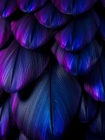 Duik in de fascinerende schoonheid van 'Mesmerizing Gradient Plumage,' een abstract kunstwerk met een gedetailleerde close-up van veren die baden in een prachtig kleurverloop van diep paars en levendig blauw. Elke veer is ingewikkeld weergegeven en benadrukt de delicate texturen en rijke, iriserende kleuren die een gevoel van…