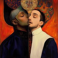 En laten we de mysterieuze liefde binnen de kerk niet vergeten. Dit portret vangt een gevoel van geheime connectie, waar de sfeer geladen is met onuitgesproken woorden en verlangens. De kleuren zijn rijk en diep, en de lichtval creëert een bijna heilige ambiance. De figuren lijken in een stille dialoog verwikkeld, hun blikken vol belofte en melancholie, wat de kijker uitnodigt om zelf deel uit te maken van hun verhaal.