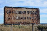 Verboden te parkeren, oud en roestig Spaans verkeersbord aan de kust