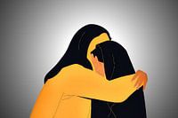 Deze eenvoudige platte digitale afbeelding toont twee vrouwen met zwarte sluiers in een innige omhelzing. De strakke lijnen en zachte kleuren geven de emotionele diepte en band tussen de twee vrouwen weer. De zwarte sluiers symboliseren verdriet en solidariteit, terwijl de innige omhelzing een gevoel van troost en steun uitstraalt. De…