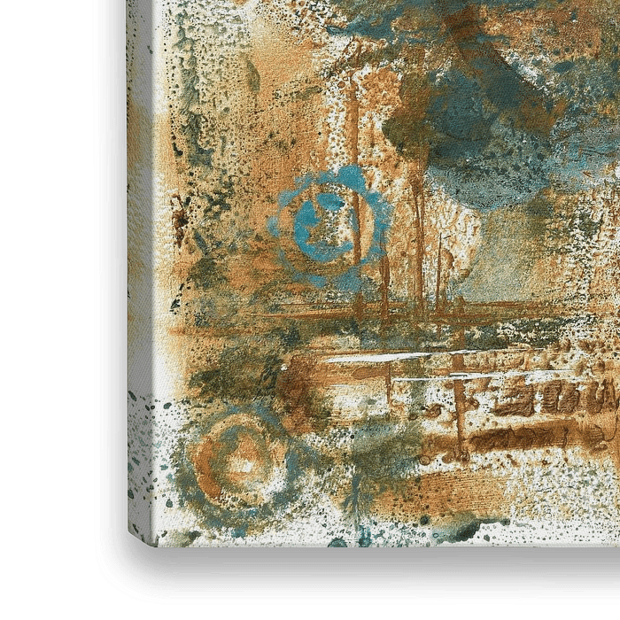 Abstract schilderij in de kleurstelling goud, blauwgroen, aqua, petrol, bruin, oranje en wit. Prachtige kleurstelling en mooi in balans. Mooi als uiting van liefde in welke vorm dan ook, een geliefde, een familielid, een vriend of vriendin. En ook gewoon een mooie afbeelding voor aan de muur. Bottanical brilliance. Modern abstract.