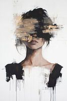 Hier ontvouwt zich een fascinerende wisselwerking tussen identiteit en abstractie. De schijnbaar gezichtsloze figuur met wervelende, gouden en zwarte penseelstreken belichaamt de strijd om zelfperceptie. Deze voorstelling roept vragen op over het verborgene en de zoektocht naar zichtbaarheid in een vaak ongrijpbare wereld.