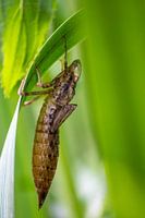 Hier was de fotograaf te laat: de libel is al uit zijn larve gekropen en is op weg om het luchtruim onveilig te maken voor andere insecten.