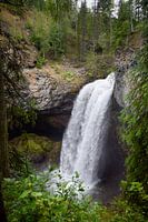 Deze waterval , midden in de bossen van West-Canada, verbergt zich achter rotsen en bomen. Ondanks dat hij niet zo hoog is, is deze waterval een genot om te bekijken en fotograferen.
